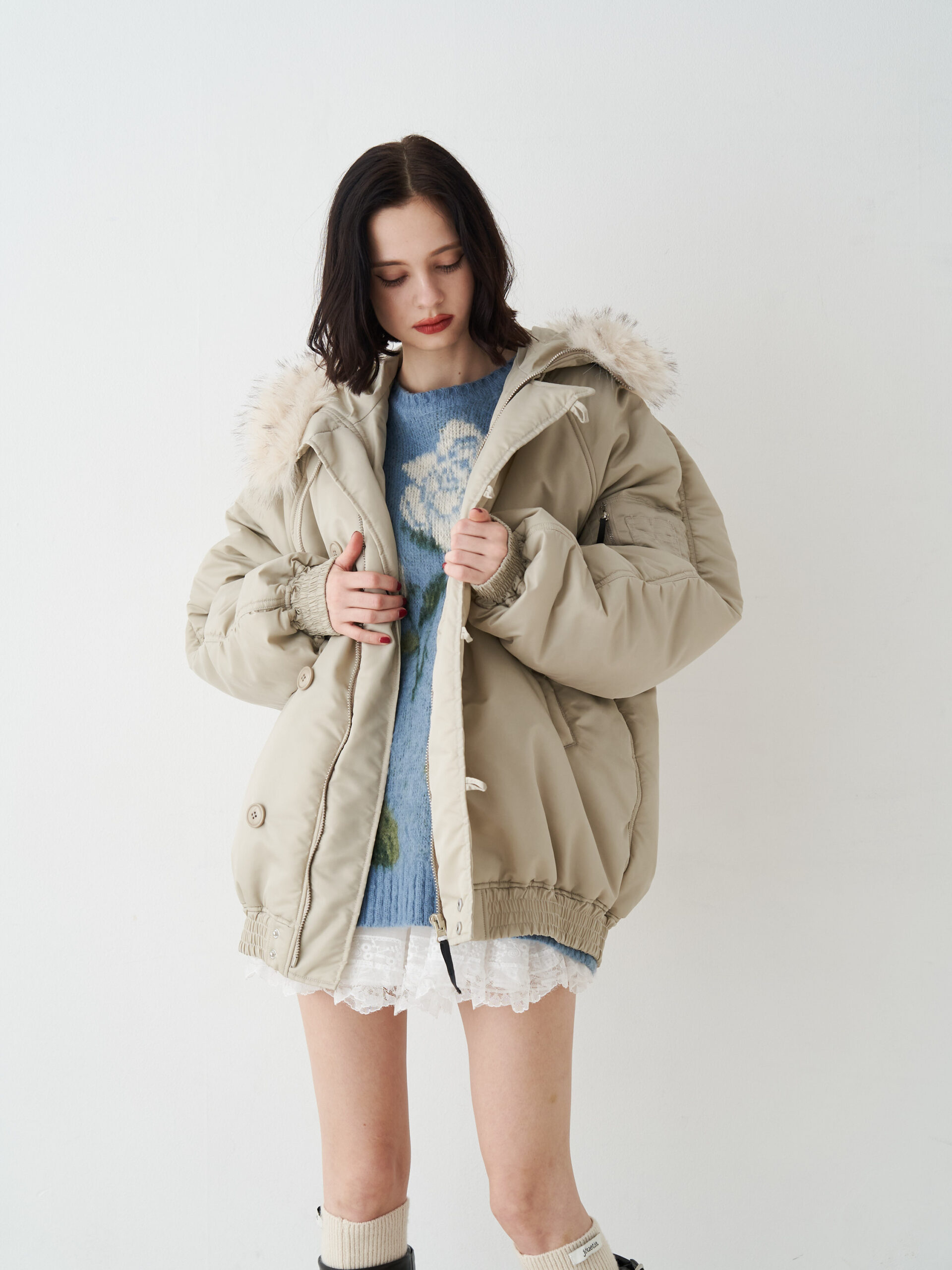 ルーズN2Bブルゾン。 フードはファスナーを開けると、ビックカラーに変身します!