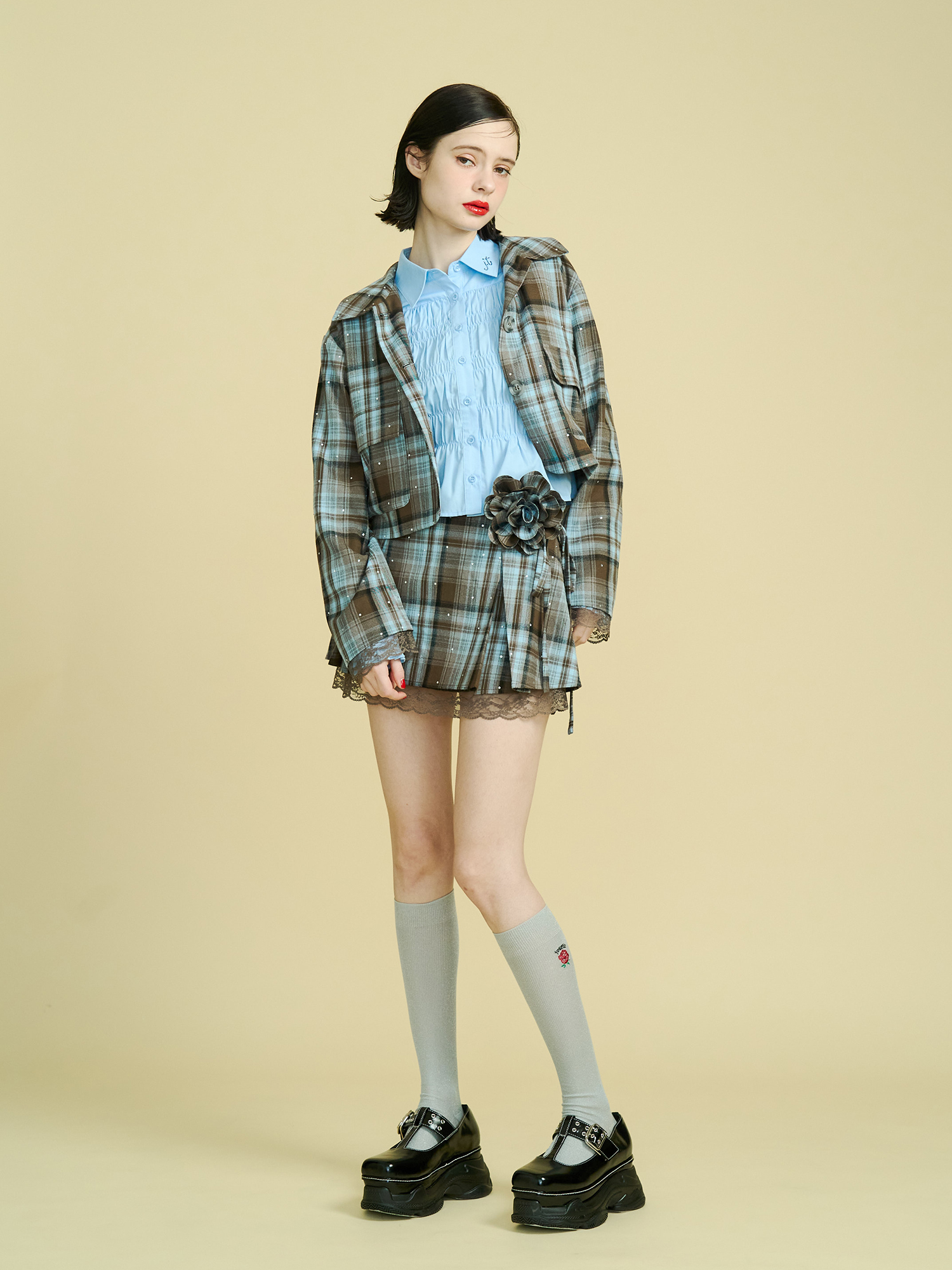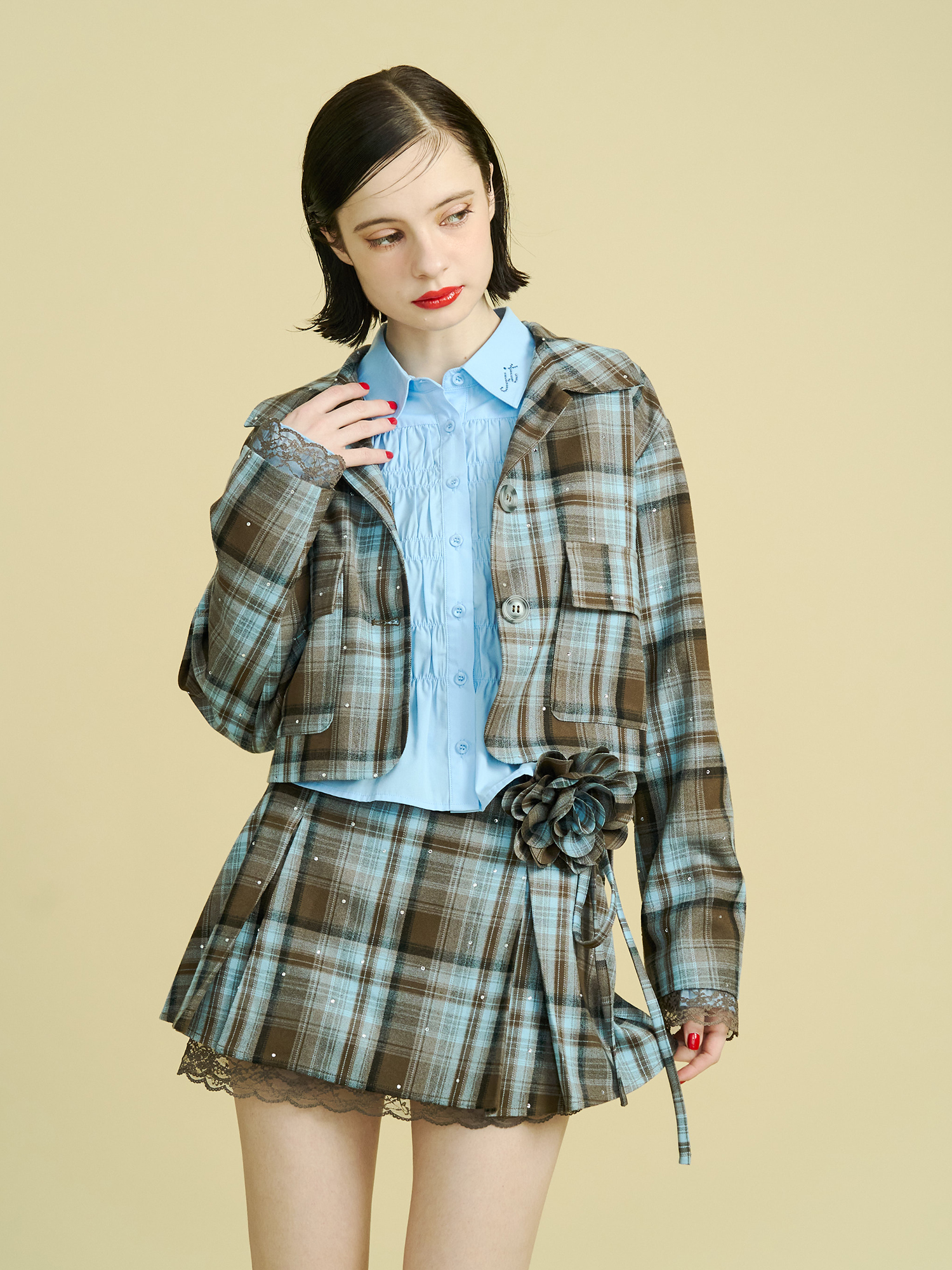 ステンカラーラインストーンショートジャケット