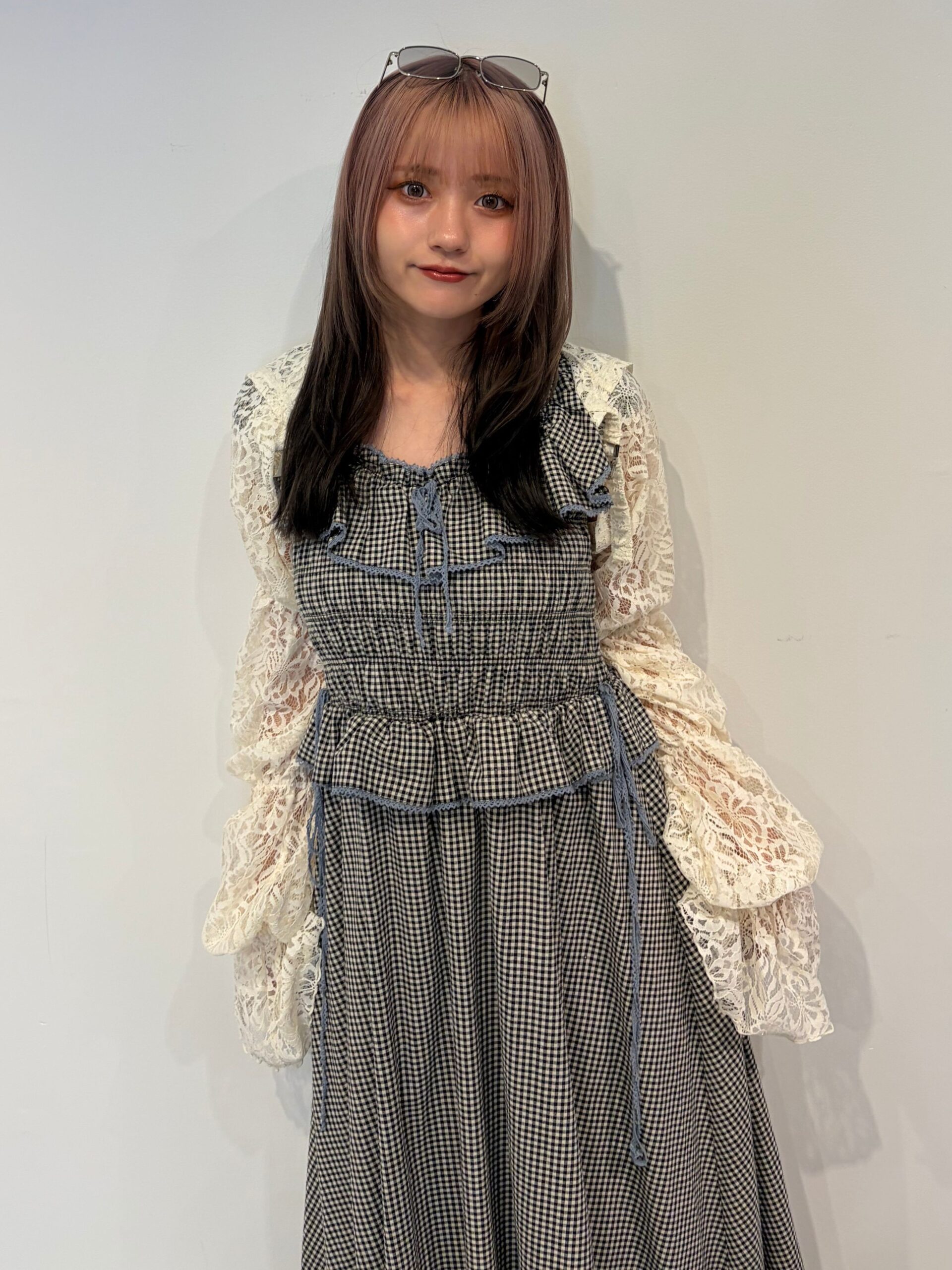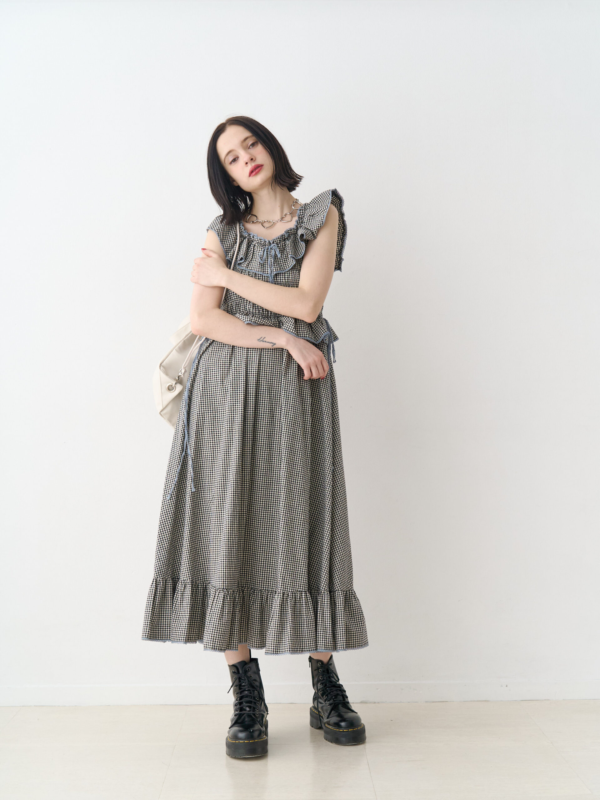 ノースリチェックフリルロングワンピース